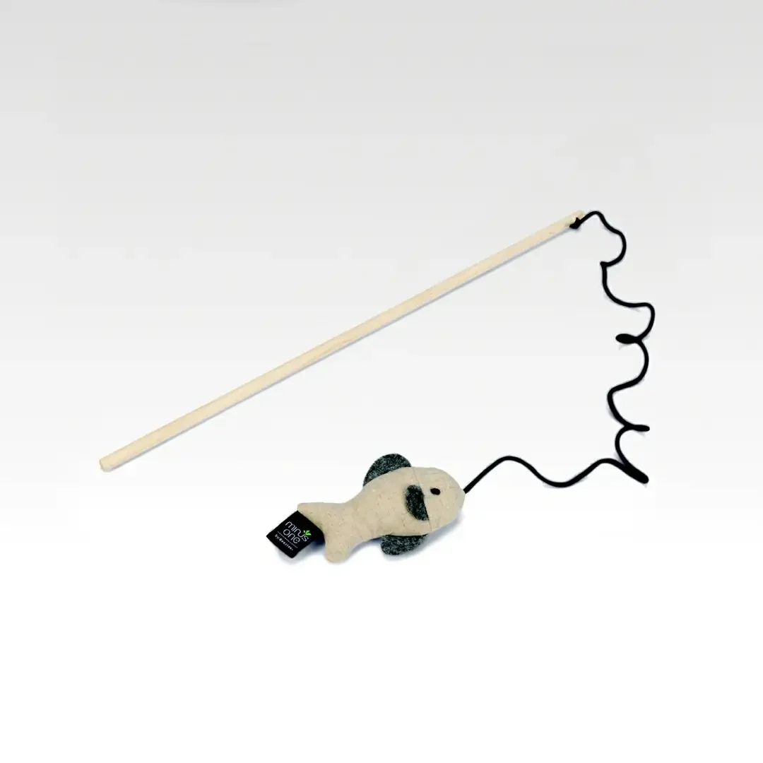 Een duurzame kleine kattenhengel met visje dat je snel even kan inzetten voor wat vertier tussendoor