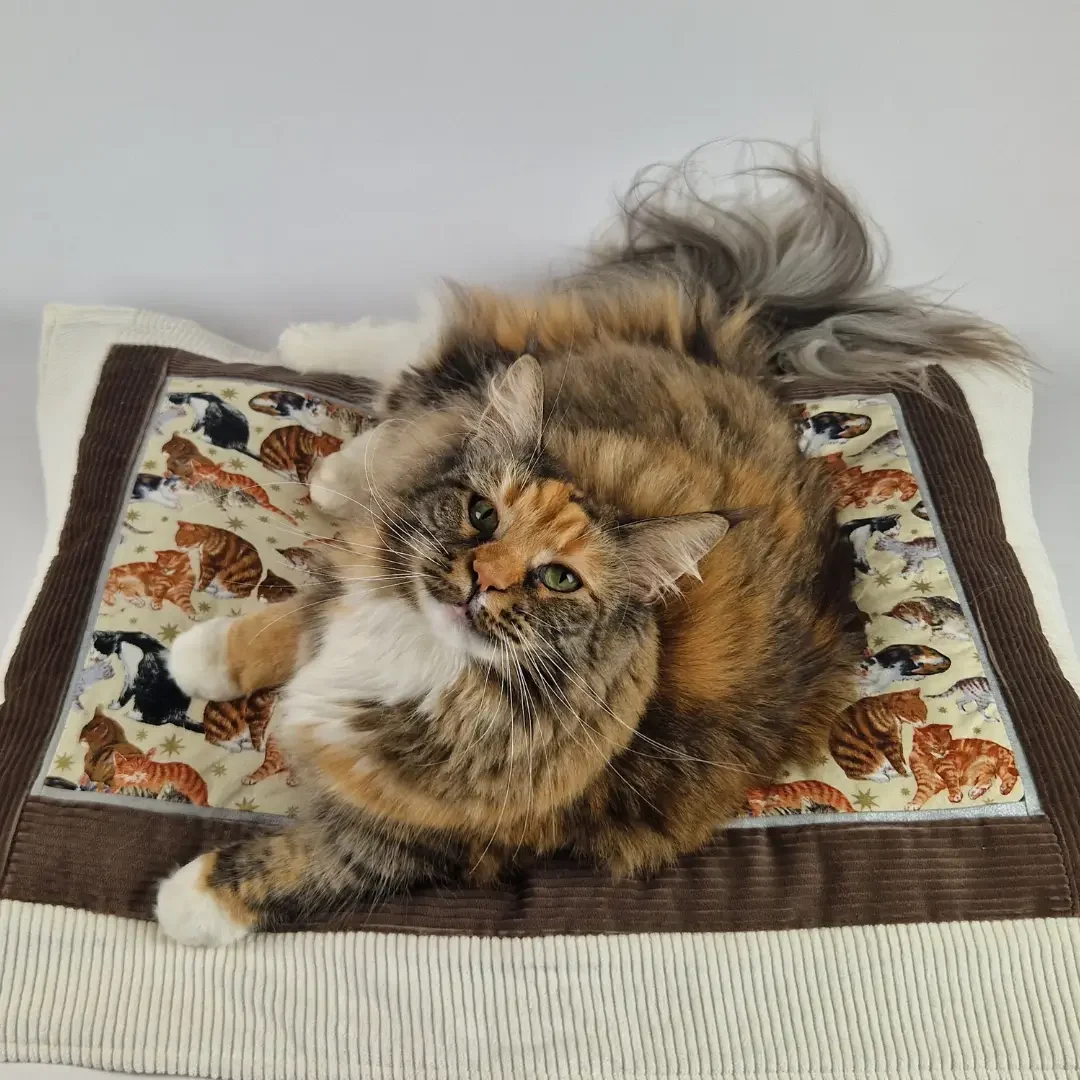 Deze deken is heel fijn om kattenharen op je meubels tegen te gaan. Maar ook om een oud mandje op te pimpen. Of om opgevouwen een zacht plekje te maken (bij gebrek aan een plat ligkussen?!) 😜