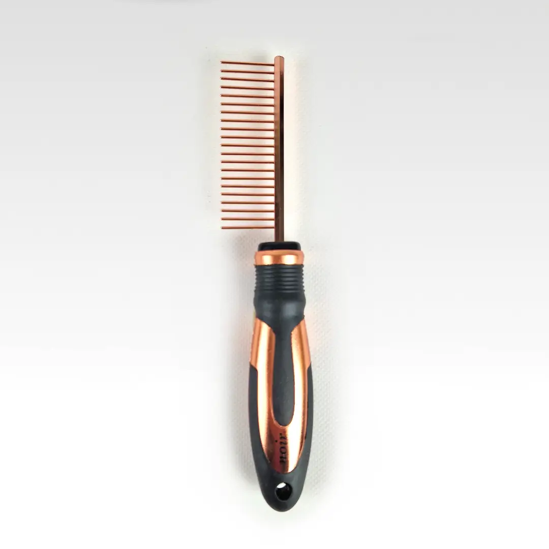 Deze stijlvolle grove kam is van gegalvaniseerd roestvrijstaal en heeft afgeronde pinnetjes waardoor er minder kans is op huidirritatie. Hij is dus niet zo scherp voor je kat, wat hem erg geschikt maakt om snel even de vacht door te kammen. Het ergonomisch handvat is gemaakt van stevig ABS-kunststof voor meer comfort bij het vasthouden van de kam. Hij ligt dus heel fijn in de hand waardoor je deze kam wat losser in je hand kan houden, wat voorkomt dat je te veel druk op de kam zet.